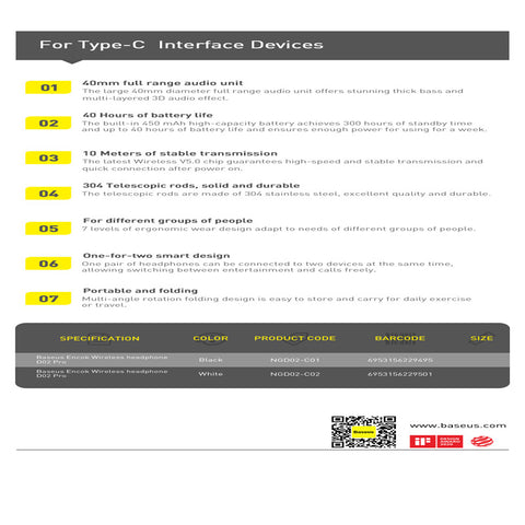 Function 3: 450mAh Battery Capacity; Up to 40 Hours Talk / Music Time